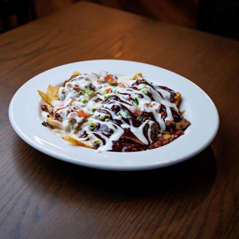 Brisket, Chute Fries, Tomato, Green Onion, Sour Cream, BBQ and Queso